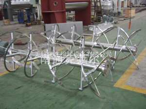 GLD攪拌器應用于高粘度(超過100,000cp)的流體攪拌中,有好的傳熱和表面替換效果。其結構形式有單螺帶和雙螺帶二種。不同數量的翼片,不同螺距以及不同形式的螺帶可以根據不同的攪拌要求而特殊制作。