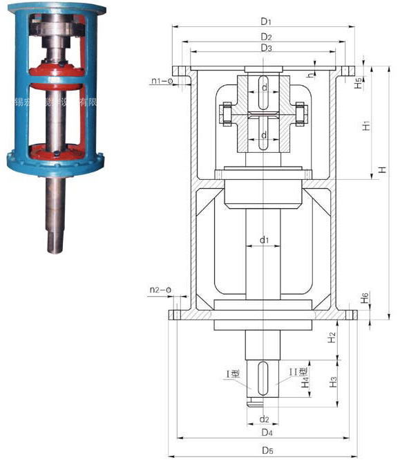 注:1、Ⅰ型為夾殼式聯(lián)軸器聯(lián)接